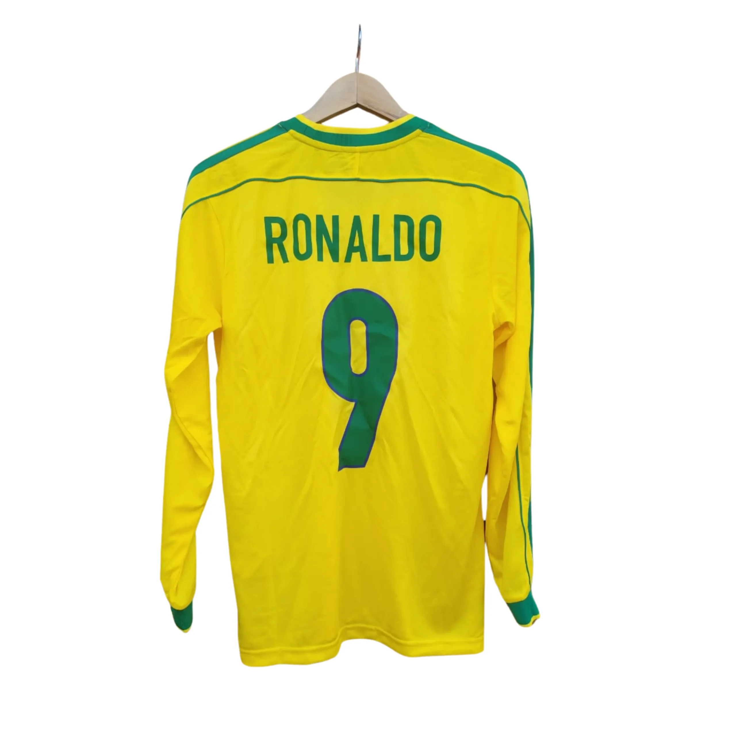 Con los colores tradicionales de Brasil y el número 9 de Ronaldo en la espalda, esta camiseta es una pieza imprescindible para cualquier fanático del fútbol y de uno de los jugadores más grandes de todos los tiempos. Hecha con materiales de calidad, es perfecta tanto para coleccionistas como para los verdaderos seguidores del “Fenómeno”.