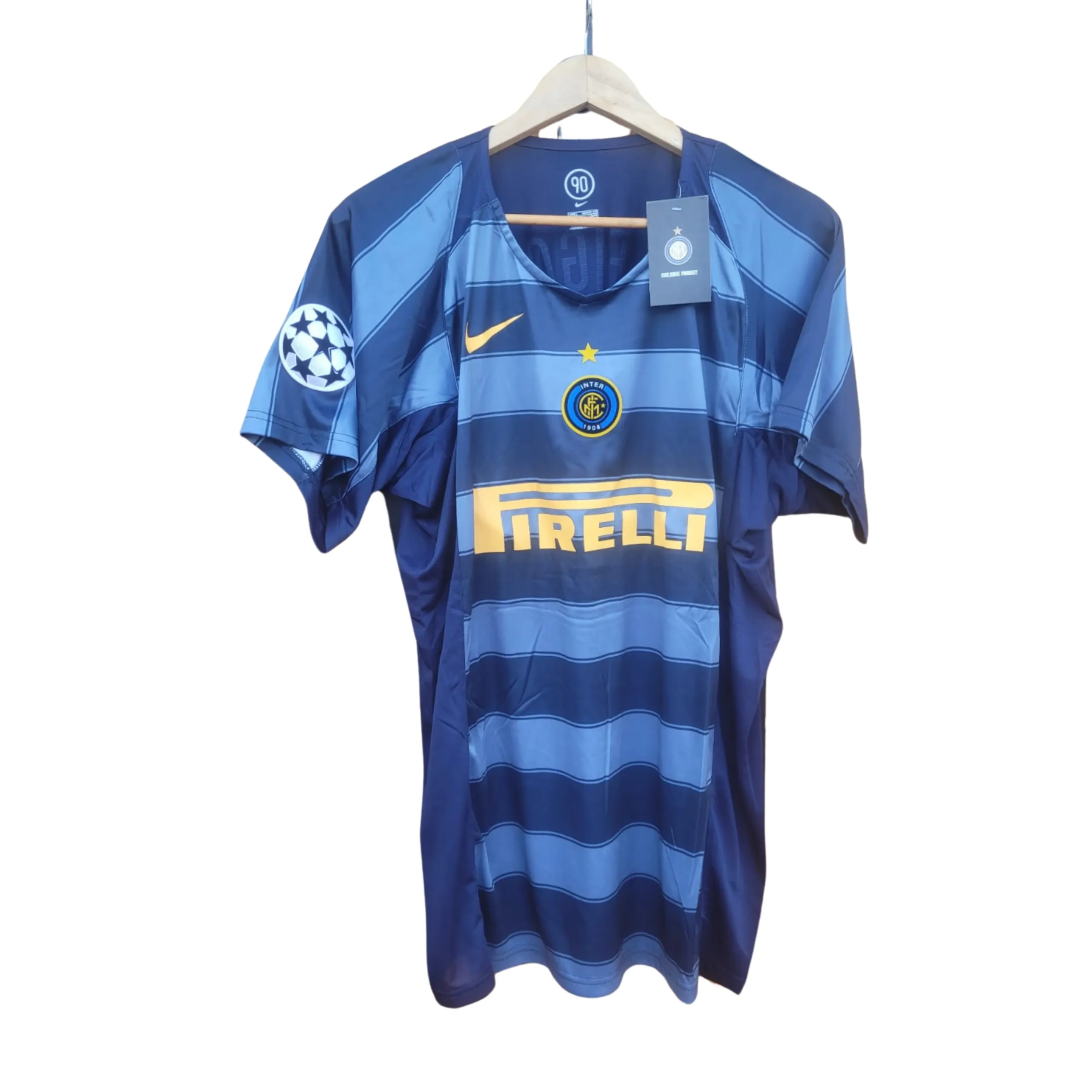 Con los colores tradicionales del Inter, azul y negro, y el diseño clásico de esa temporada, la camiseta refleja la identidad y la pasión de los hinchas “Nerazzurri”. Hecha con materiales de alta calidad, esta prenda es perfecta tanto para llevar en los días de partido como para agregar un toque retro a tu estilo diario.