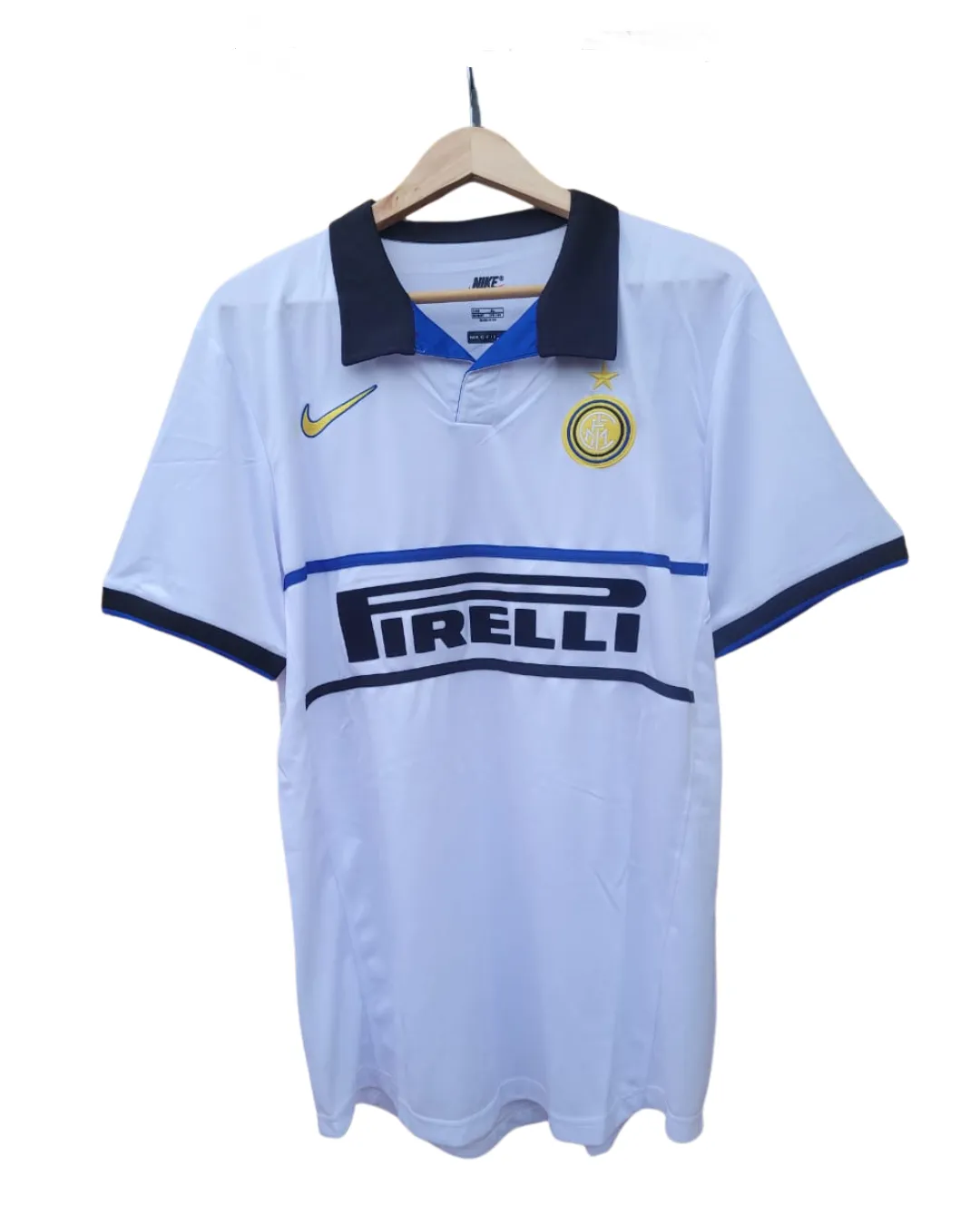 La camiseta destaca por su clásico diseño en franjas azul y negro, emblema inconfundible del Inter, confeccionada con materiales de gran calidad que aseguran comodidad y durabilidad. Es ideal tanto para coleccionistas que buscan piezas históricas, como para fanáticos que desean vestir con estilo la camiseta que alguna vez llevó el legendario “Bam Bam”.
