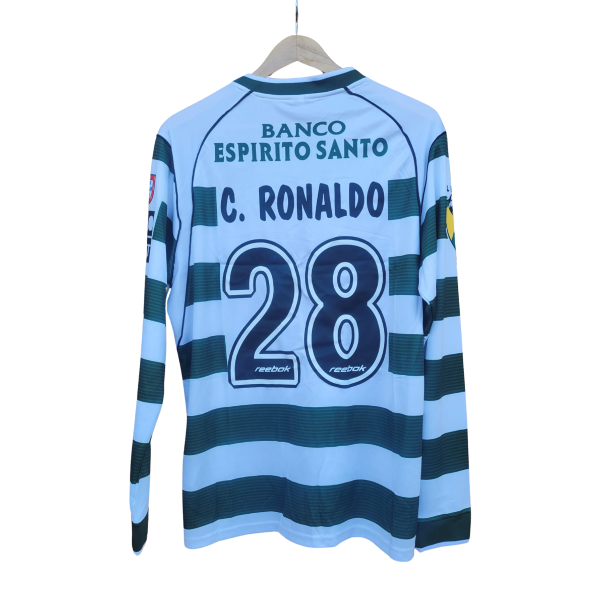 “¡Hazte con una camiseta histórica del Sporting de Lisboa, con el nombre de Cristiano Ronaldo! Esta prenda es una pieza única para los verdaderos fanáticos del fútbol y los seguidores de la carrera de CR7. La camiseta es oficial, con los colores tradicionales del Sporting y el logo del club bordado. Además, lleva el nombre y el número de Cristiano Ronaldo, quien comenzó su carrera profesional en este emblemático club.